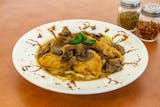 Grilled chicken sauteed with fresh mushrooms, tomatoes an pesto sauce.